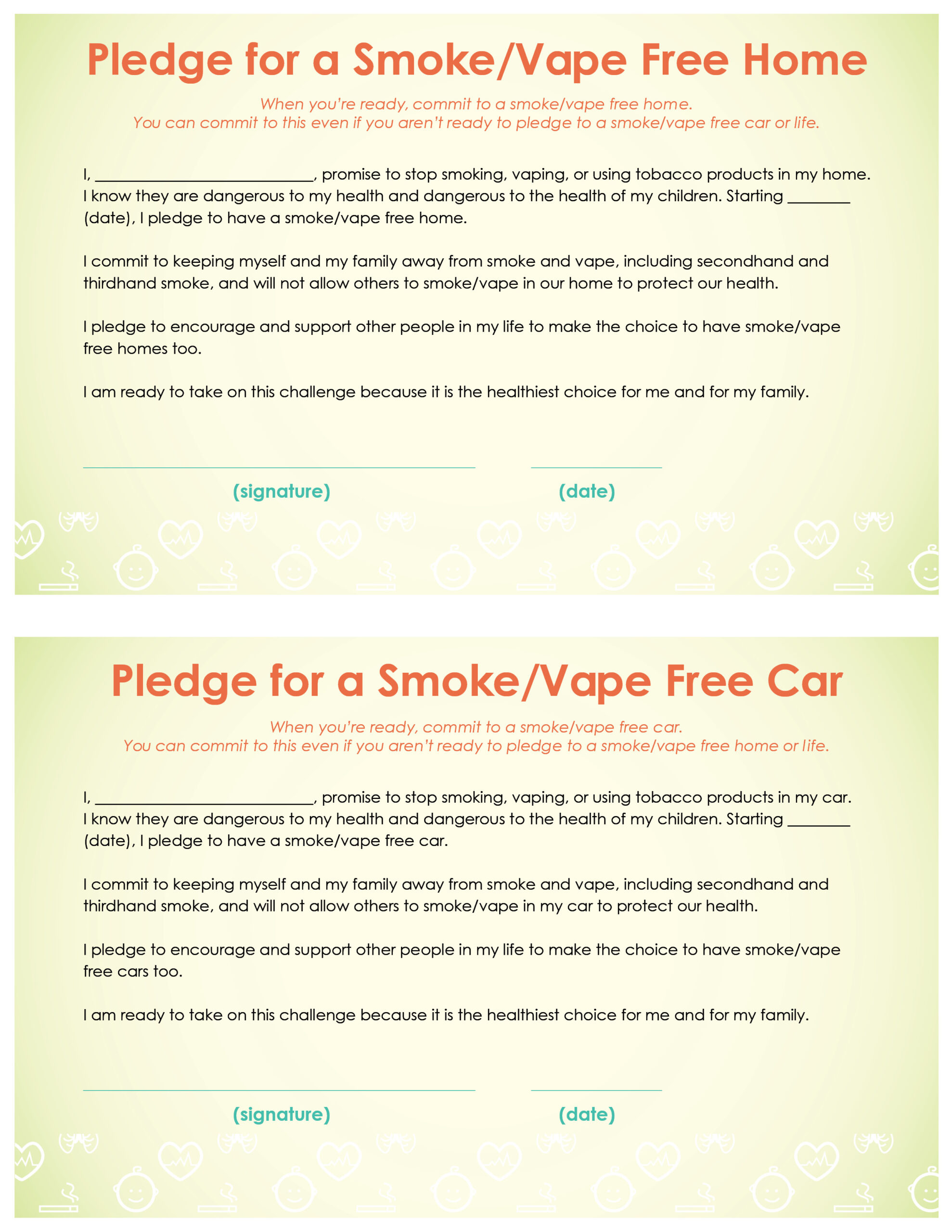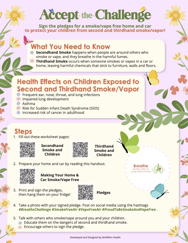 Spring Challenge – Pledge to make your home and care smoke/vape free to keep your kids safe from second and thirdhand smoke!